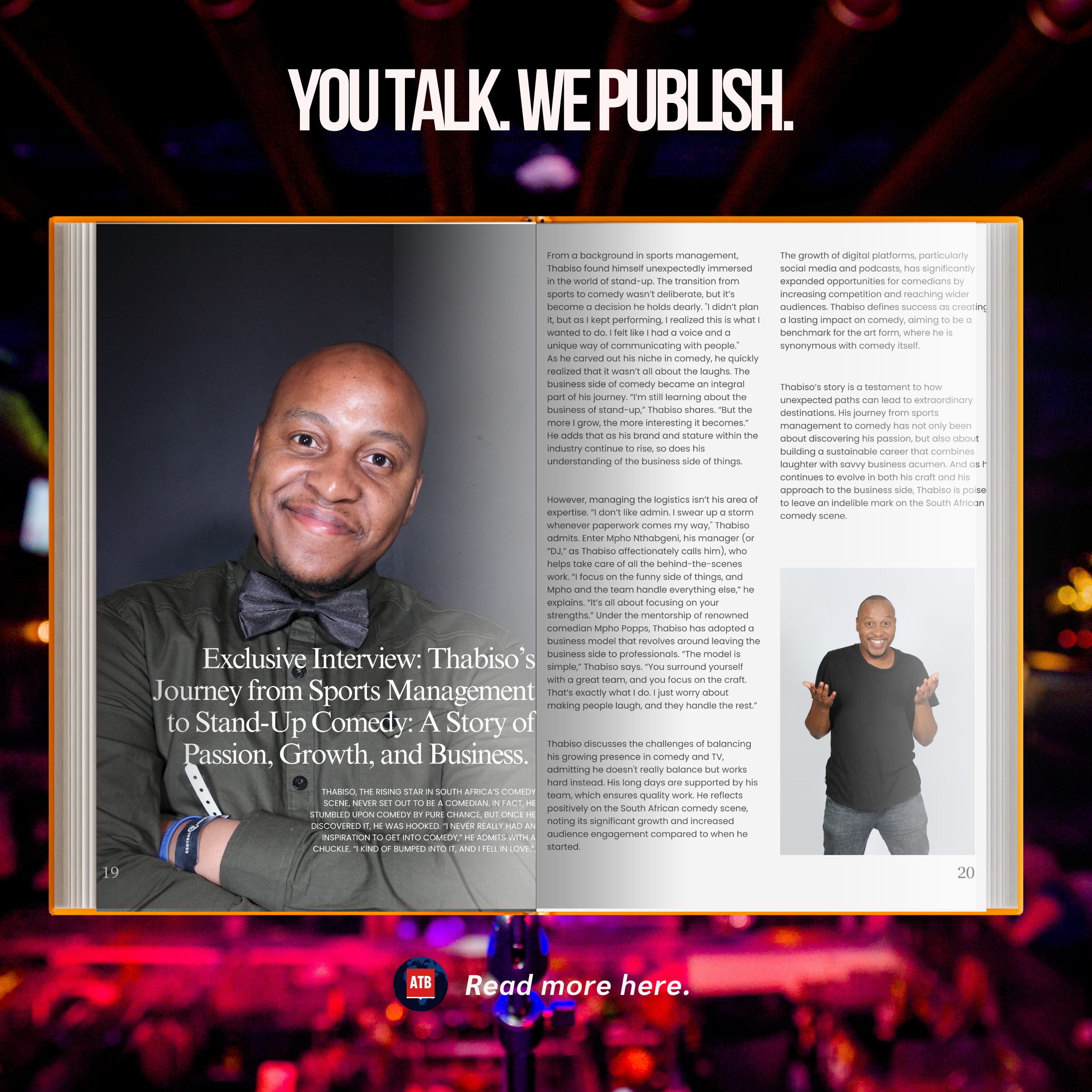 For a deeper look into Thabiso’s journey and his growth in both comedy and business, read more in Africa Talks Business Magazine below: